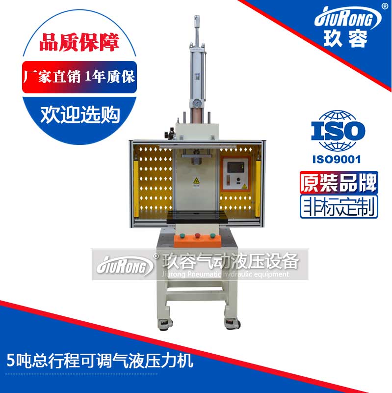 5T總行程可調(diào)氣液增壓機為非標定制設(shè)備,5噸出力的氣液壓力機產(chǎn)品。產(chǎn)品最大的特點是:總行程可調(diào)。設(shè)備采用JRC總行程可調(diào)氣液增壓缸作為氣動執(zhí)行元件,采用PLC控制,方便操作簡單方便舒適,可搭配1t、3t、5t、8t、10t氣液增壓缸使用。